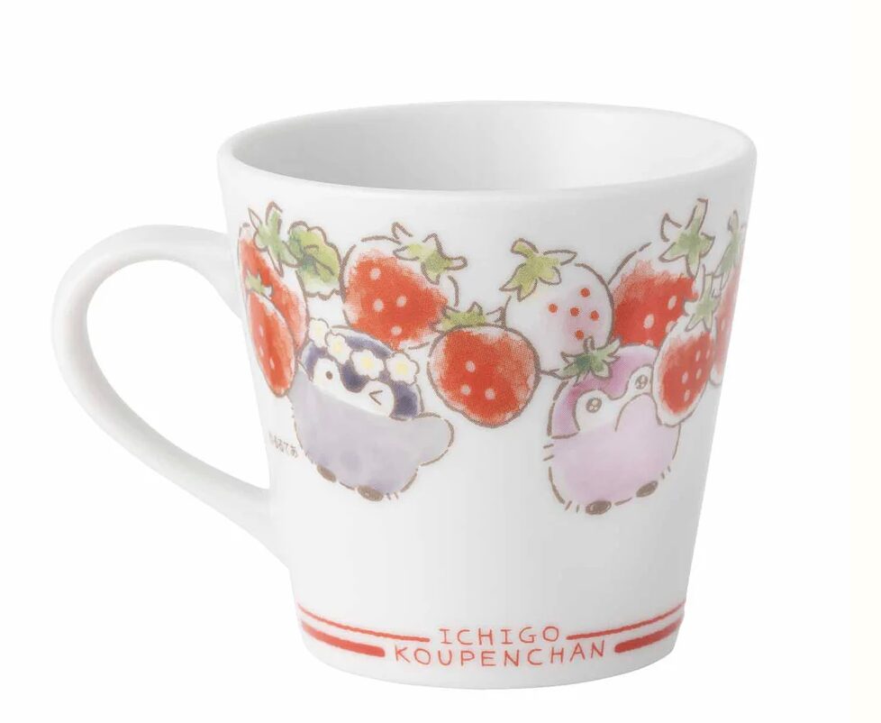イチゴに目を輝かせるピンクコウペンちゃんが可愛いらしく、春にぴったりのイチゴ柄です。