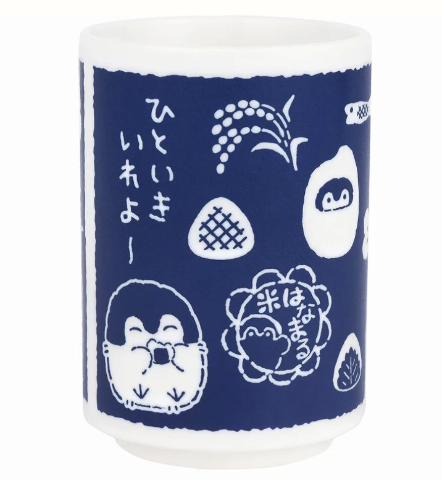 和風なデザインでほっこりおにぎりを食べるコウペンちゃんの湯呑みで、ゆっくり緑茶でも。