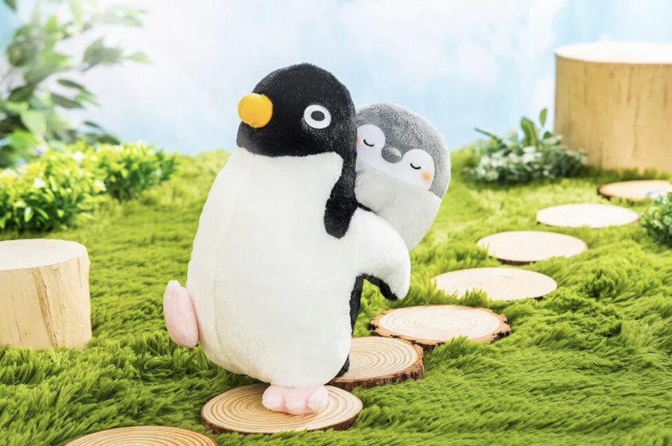 ぬいぐるみやグッズ化もされている「アデリーさんに抱っこされるコウペンちゃん」は、二人の関係性を象徴する場面のひとつです。豪快なアデリーさんが小さなコウペンちゃんを優しく抱きかかえる姿は、強さと優しさの両立を端的に表しています。
