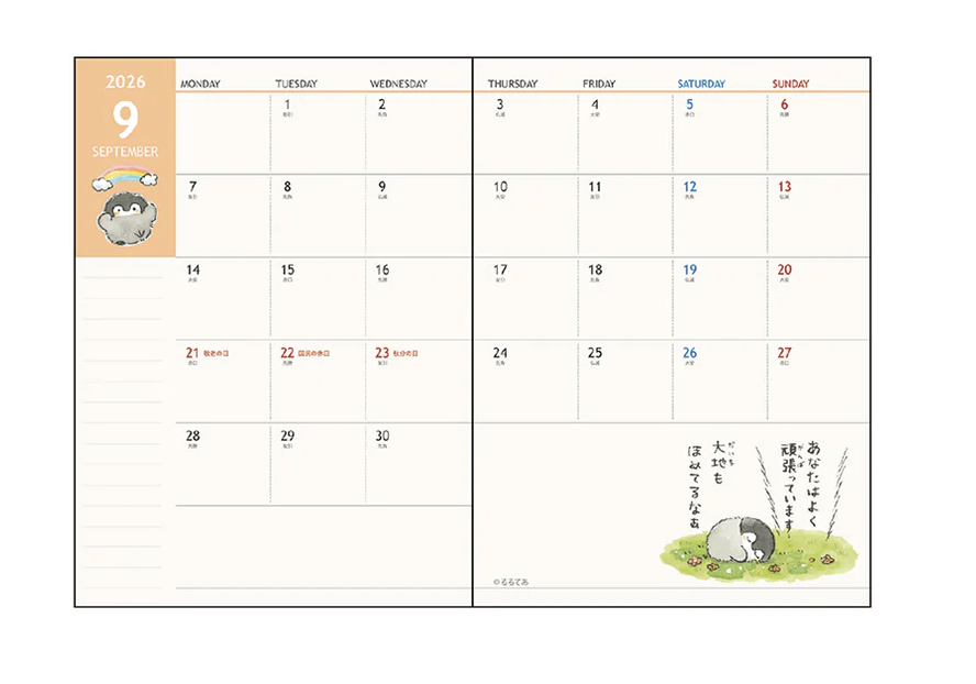 手帳は「癒し」だけでなく、しっかりとした実用性を兼ね備えています。スケジュール管理を重視する社会人や学生に配慮し、次のような機能が盛り込まれています。