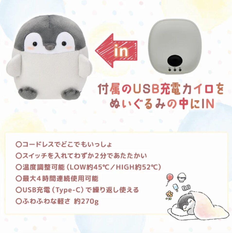 ぬいぐるみ型の場合は、乾いた布で優しく汚れを拭き取りましょう。 内部の充電カイロ部分を外して洗うと清潔に保てます。 お手入れの際も「きれいにしててえらい〜!」の気持ちを忘れずに🐧✨
