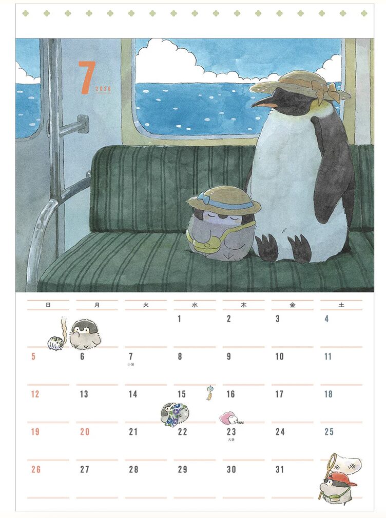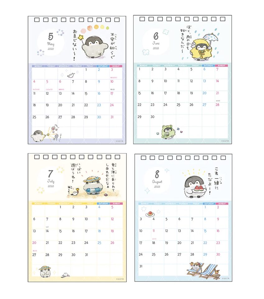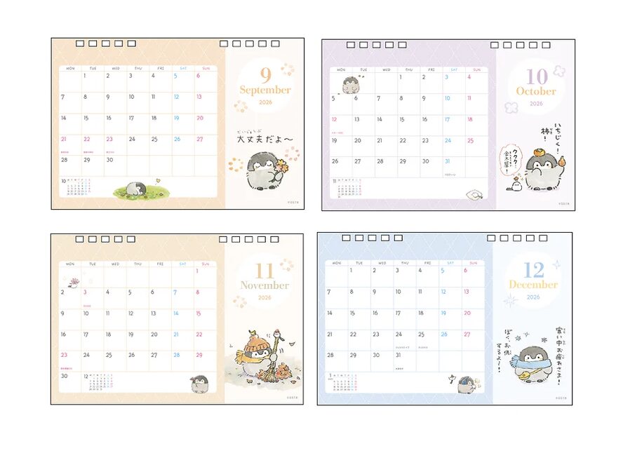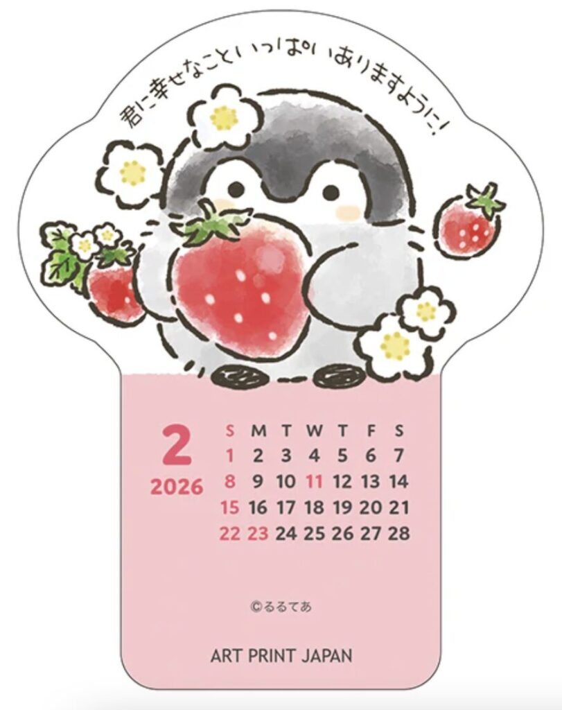 2026年カレンダーは、るるてあさん描き下ろしのイラストを多数収録。卓上版と壁掛け版が発売されていて、オフィスや自宅など用途に合わせて選べる構成になっています。(手帳版については過去ブログをご覧ください)
