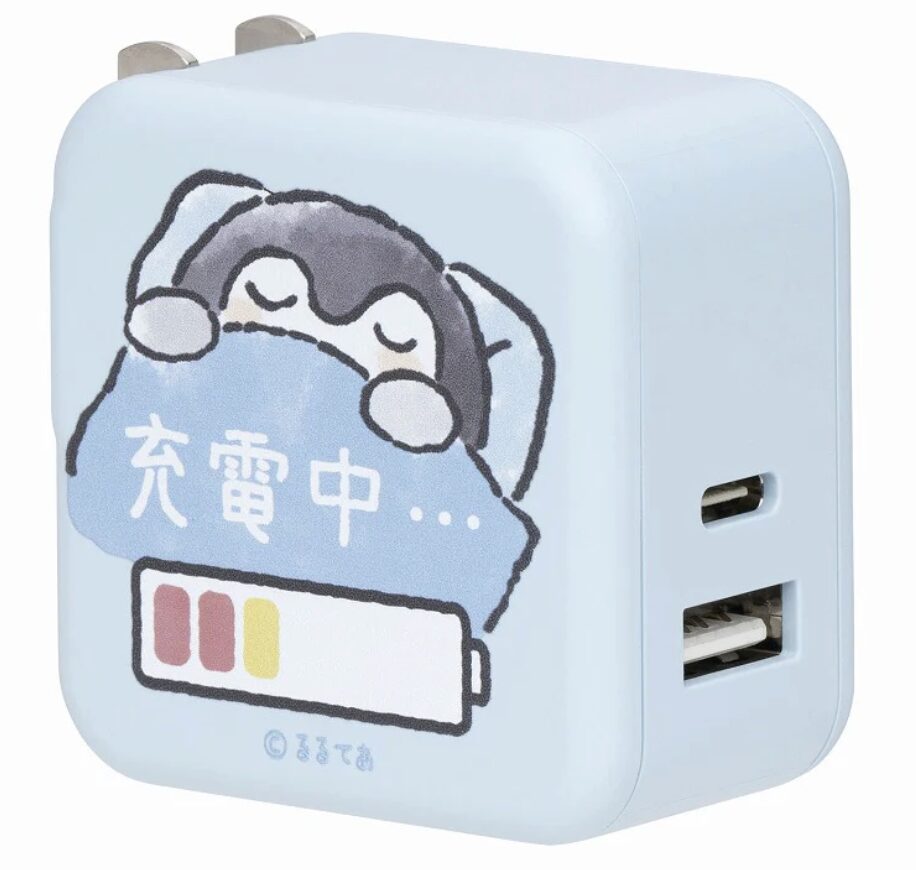 家でも職場でも使える、コウペンちゃんデザインのACアダプタ。 USB-AとType-Cの2ポート仕様で、スマホとタブレットを同時に充電できます。