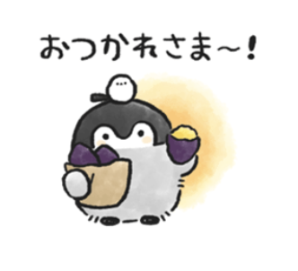 ほくほくのさつまいもを手にしたコウペンちゃんが「おつかれさま〜!」と微笑むスタンプ。 見ているだけで一日の疲れが溶けていくようです。 仕事終わりのメッセージや、頑張っている友人への一言にぴったり。