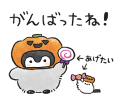 ジャックオランタンに仮装したコウペンちゃんが「がんばったね!」と語りかけてくれるスタンプも人気。 勉強・仕事・育児など、どんな頑張りにも寄り添ってくれます📖