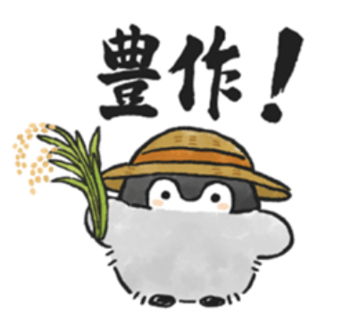黄金色の稲穂を収穫して、どこか誇らしげなコウペンちゃん🌾